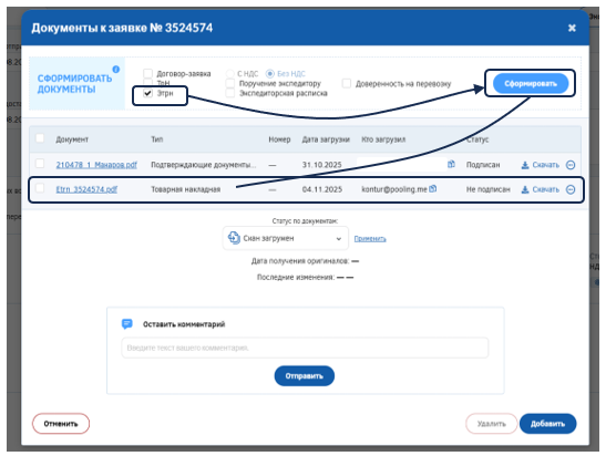 После подтверждения от поддержки Pooling.me вы сможете формировать и подписывать ЭТрН прямо в интерфейсе платформы.